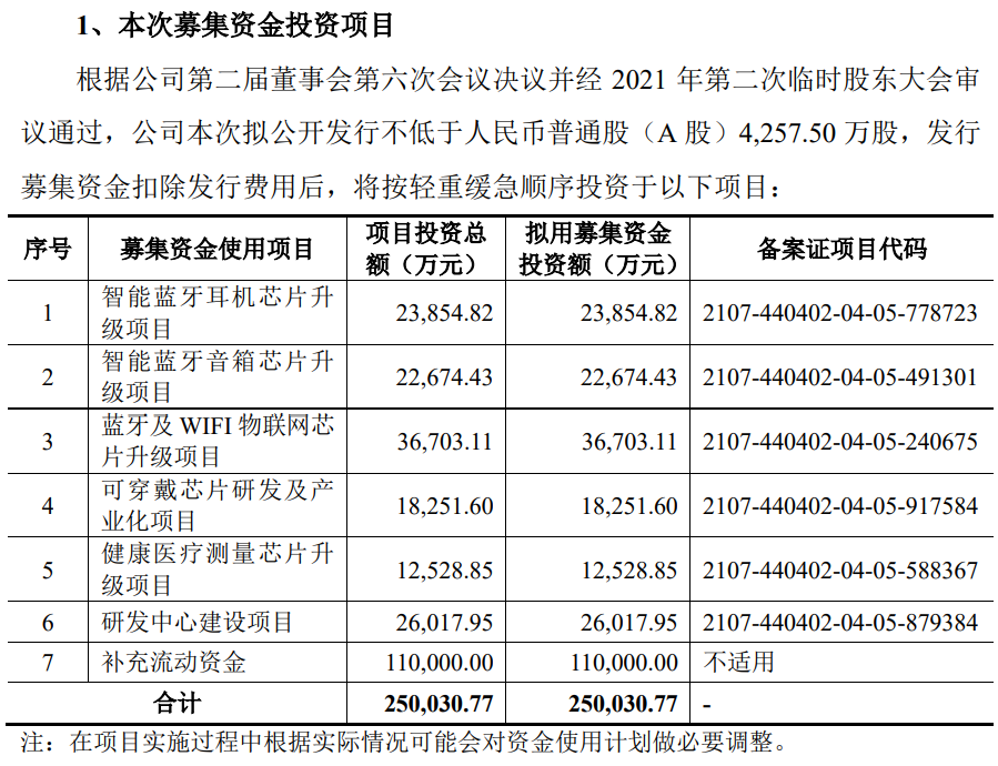不仅如此,在2022年6月申请在深交所上市时,杰理科技提出了“健康医疗测量芯片升级项目”的投资计划,对公司现有健康医疗终端芯片系列产品进行技术升级,总投资额为1.25亿元,其中包含的研发投入金额就高达8050万元。针对该项目,杰理科技在描述其可行性时表示:“在未来的十年里,我国家用医疗器械行业的发展将迈入黄金期,医疗器械市场需求将快速增长”。