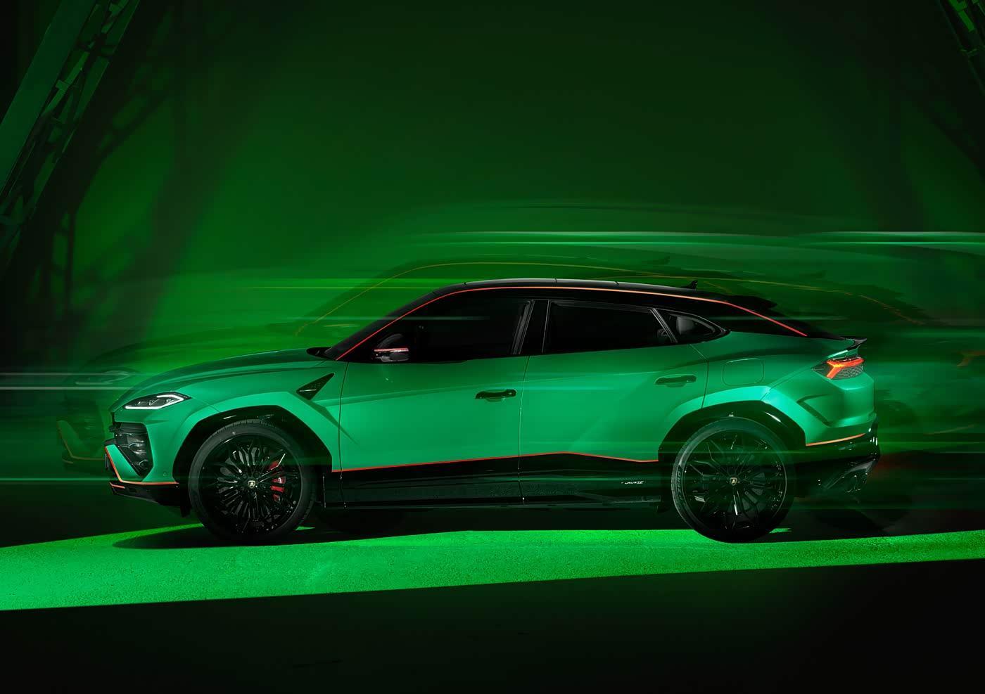 外观方面,新车整体设计与Urus SE并无太多区别,但官方为其提供六款专属车身漆面,分别为Arancio Xanto橙色、Bianco Asopo白色、Grigio Telesto灰色、Viola Pasifae紫色,以及首次搭载于Urus车系的Giallo Tenerife黄色与Verde Mercurius绿色。