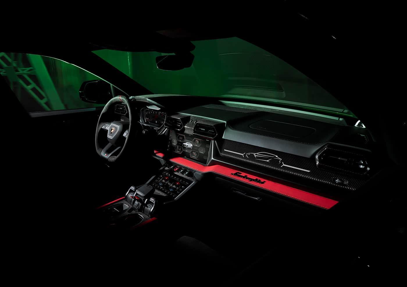 内饰以Nero Ade黑色为主色调,提供Viola Acutus紫色、Bianco Leda白色、Giallo Quercus黄色、Arancio Dryope橙色、Verde Viper绿色、Grigio Octans灰色六种对比色,座椅、头枕及内饰刺绣另有12种专属配色可选,可与外观形成完整呼应。